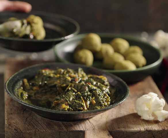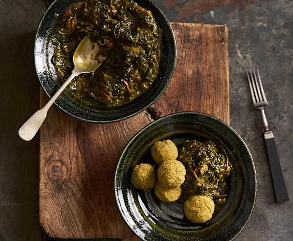 Almôndegas de couve-flor com salteado de acelgas