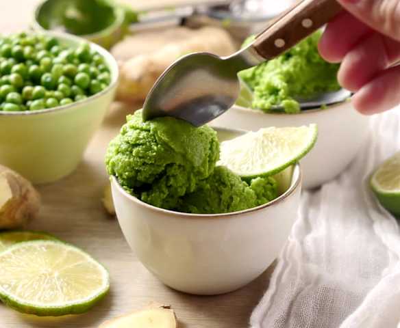 Sorbet petits pois, citron vert et gingembre