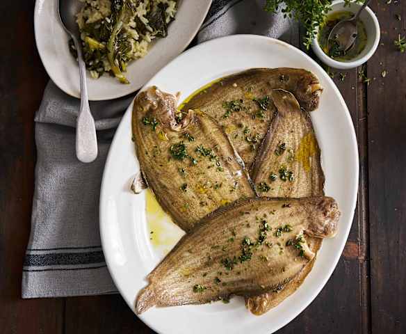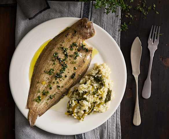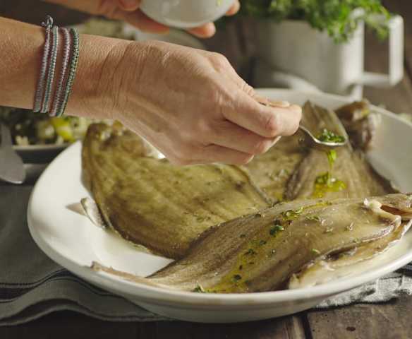 Filetes de peixe-galo com salada de bulgur e molho holandês de abacate