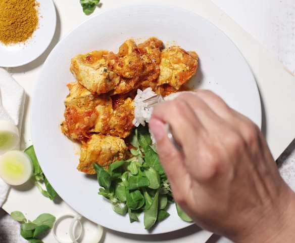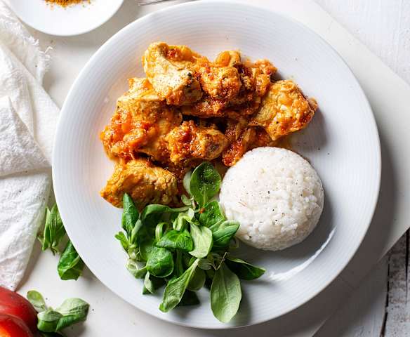 Caril de peru com arroz