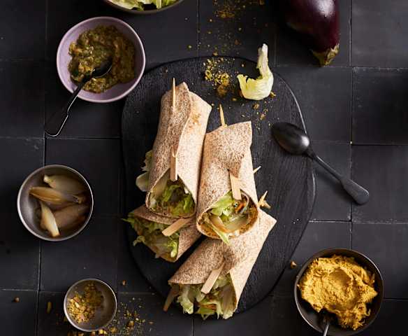 Wrap integral com sobras de peru e beringela